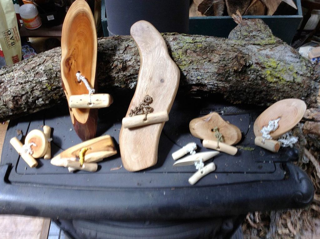 Rose’ toys, which he calls branch spinners, are essentially smooth pieces of wood wound up in twine that spin and gyrate when the strings are pulled apart. The twine runs through the piece of wood’s center so it can properly spin. The twine has hand carved wooden handles on the edges where the player holds the toy. When the wound up twine is pulled apart, the tension that is created rapidly spins the wooden centerpiece, creating a humming sound.