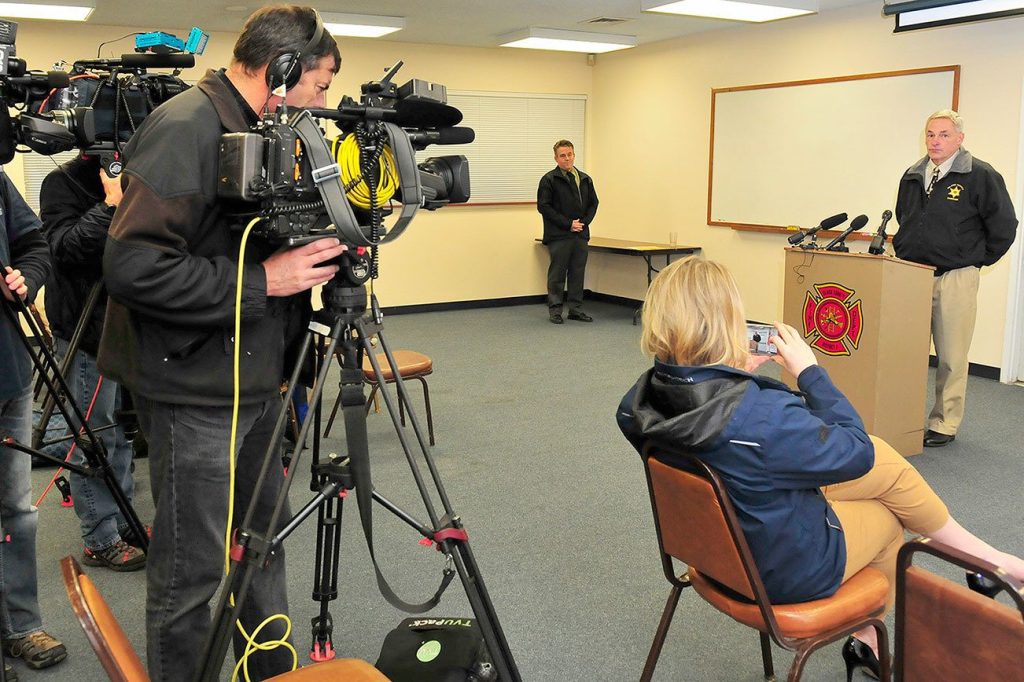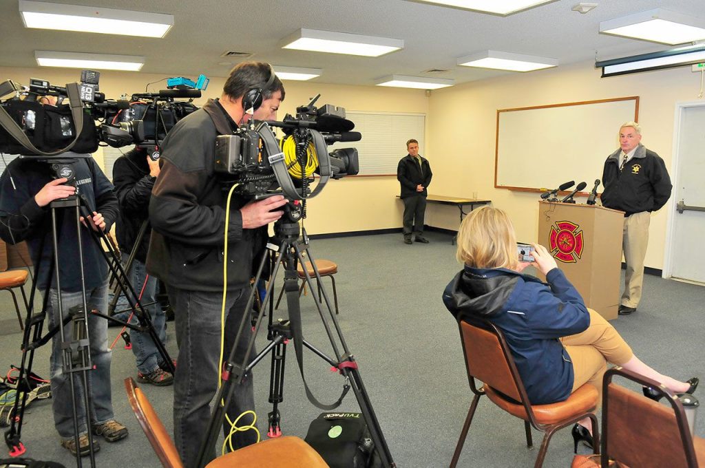 Island County Sheriff Mark Brown called a press conference Thursday to update the media on the investigation and dispel rumors. Television news crews from Seattle attended the meeting at the Heller Road fire station in Oak Harbor.