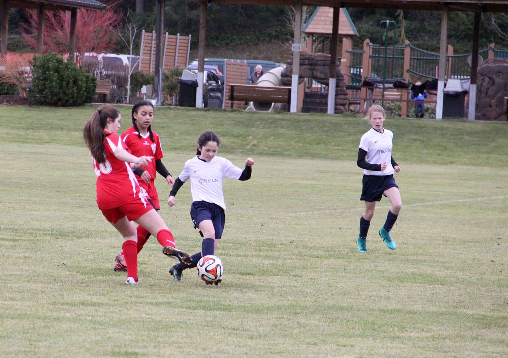 South Whidbey Reign’s girls U-14 soccer club defeated Issaquah Select FC 3-1 in the first round of the Washington Youth Soccer Founders Cup on Sunday at the South Whidbey Sports Complex.