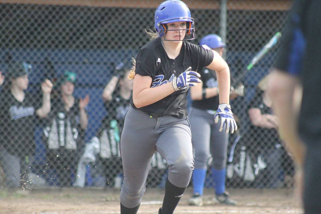 South Whidbey junior Bella Northup looked to the outfield as she approached the plate.