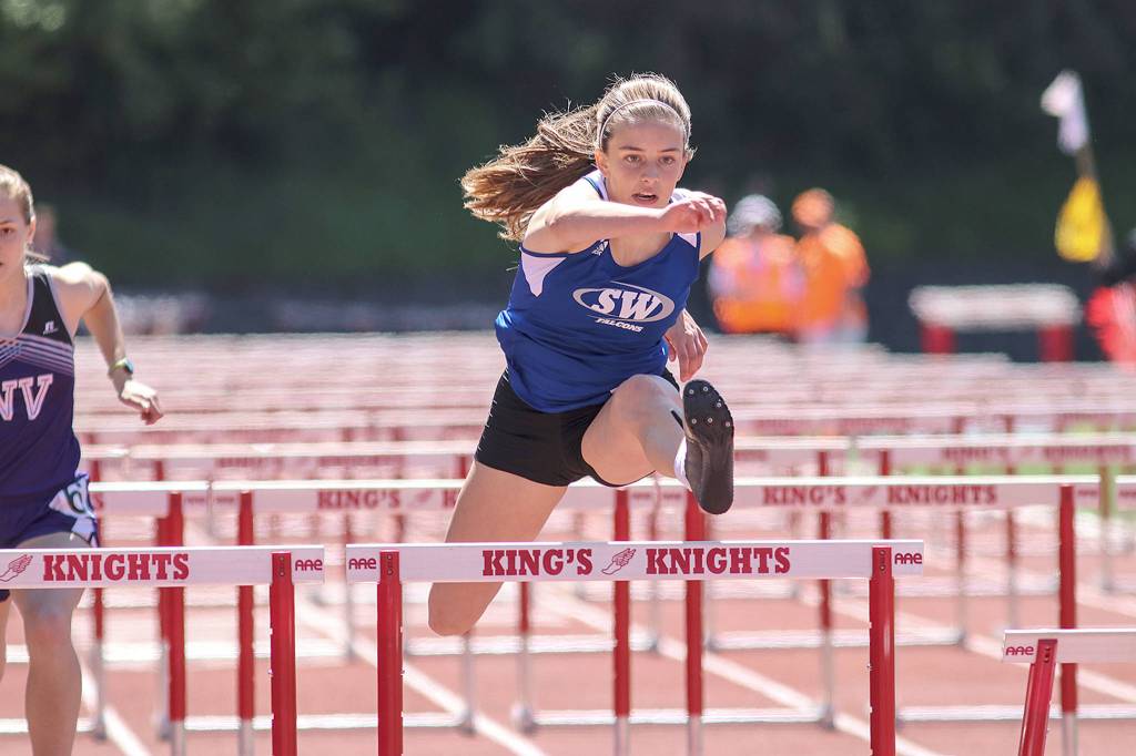 At the class 1A/2B bi-district championship meet on May 18 and 20 at King’s High School, Nielsen accomplished what few others in the state have when she qualified for the state meet in four different events: 100-meter hurdles, 300-meter hurdles, long jump and triple jump. She’s one of 16 Falcons headed to Eastern Washington University on May 25 and 27.