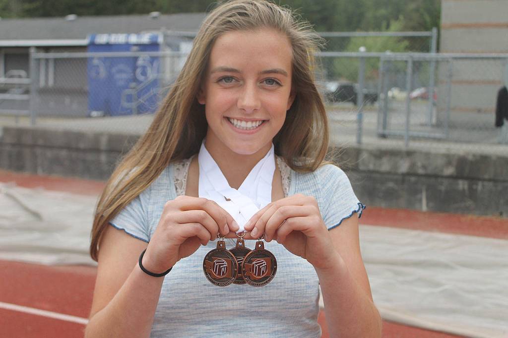 Forsyth was one of four Falcons who placed in the top eight at the state track meet on May 25 and 27 at Eastern Washington University in Cheney. She was also one of two South Whidbey athletes to earn multiple medals, the other being junior Sophia Nielsen. Nielsen placed third in the triple jump, seventh in the 300-meter hurdles and eighth in the long jump. She nearly reached the finals in her fourth event, the 100-meter hurdles, but tripped on the final hurdle.