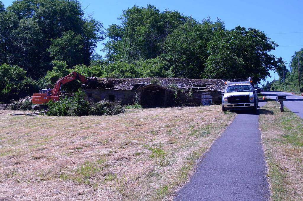 Located on the corner lot of Stewart Road and Myrtle Avenue, the long rectangular structure was built in the 1930s by the Lieseke family, which arrived in Freeland in 1900 and belonged to the Free Land Association, the Socialist group that helped found the area more than 100 years ago. The building fell into disrepair long ago and was slowly being consumed by blackberry bushes.