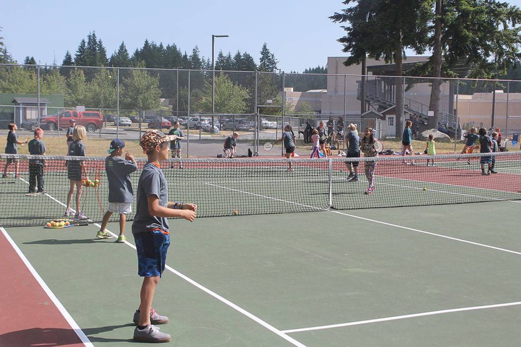 There were several coaches from the high school’s sports teams who helped teach the kids, including tennis coach Karyle Kramer and boys basketball coach Mike Washington. Instructors from Armstrong’s Taekwondo in Clinton also taught the kids the basics of the discipline in the school’s mat room. Fifty-five volunteers helped throughout the three days.