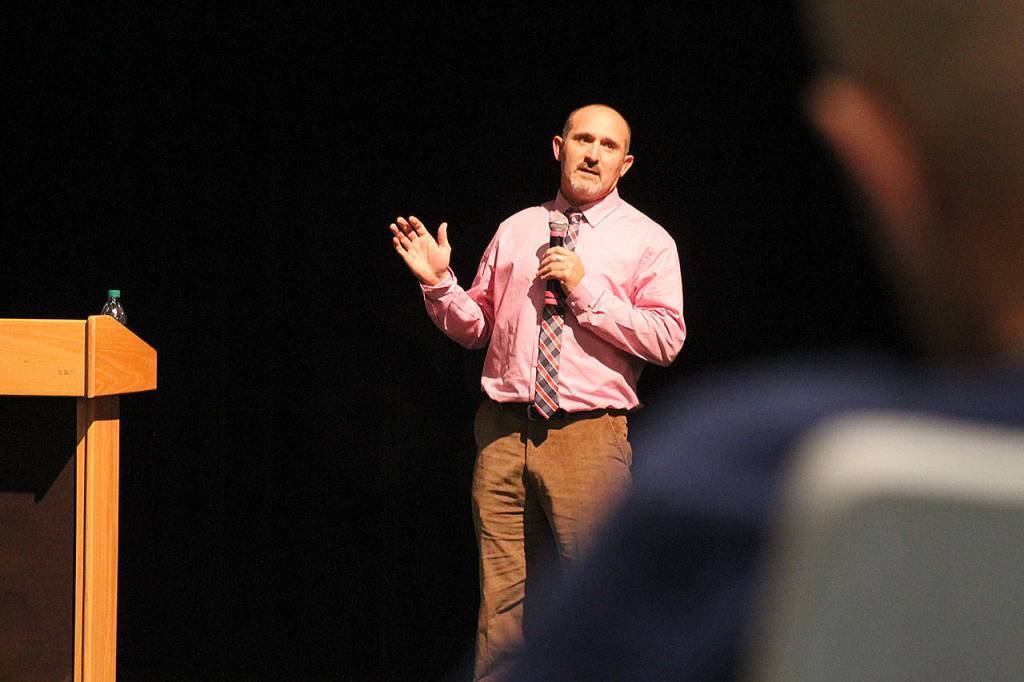 Swanson kicked off the meeting by addressing general concerns about the school year. He covered everything from scheduling to day-to-day interactions between middle and high school students. Swanson said all students will have math, science, history, physical education and electives. He assured the crowd that fifth and sixth graders will have physical education everyday and added that there will be additional elective offerings for grades 7 and 8.