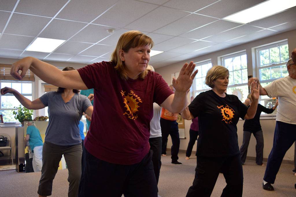 Kyle Jensen / The Record — Lynne Donnelly leads a class through tai chi movements. Donnelly is also the president of the Whidbey Island Holistic Health Association.