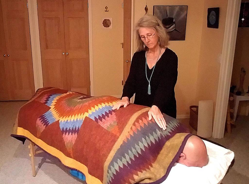 Contributed photo — Reiki master and teacher Sue Averett performs reiki techniques on a patient. Averett says she will likely offer demonstrations during the holistic health fair.