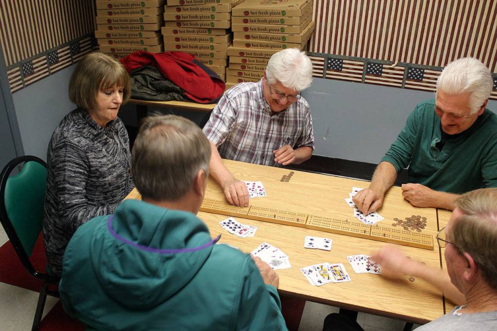 Island Pizza has been happy to turn its back room into a cribbage den from 6 to 9 p.m. on Thursdays for many years, said Gene Rice, the keeper of the “cribbage box.” It’s filled with decks of cards, boards and pegs and stays at the restaurant near Naval Air Station Whidbey Island.