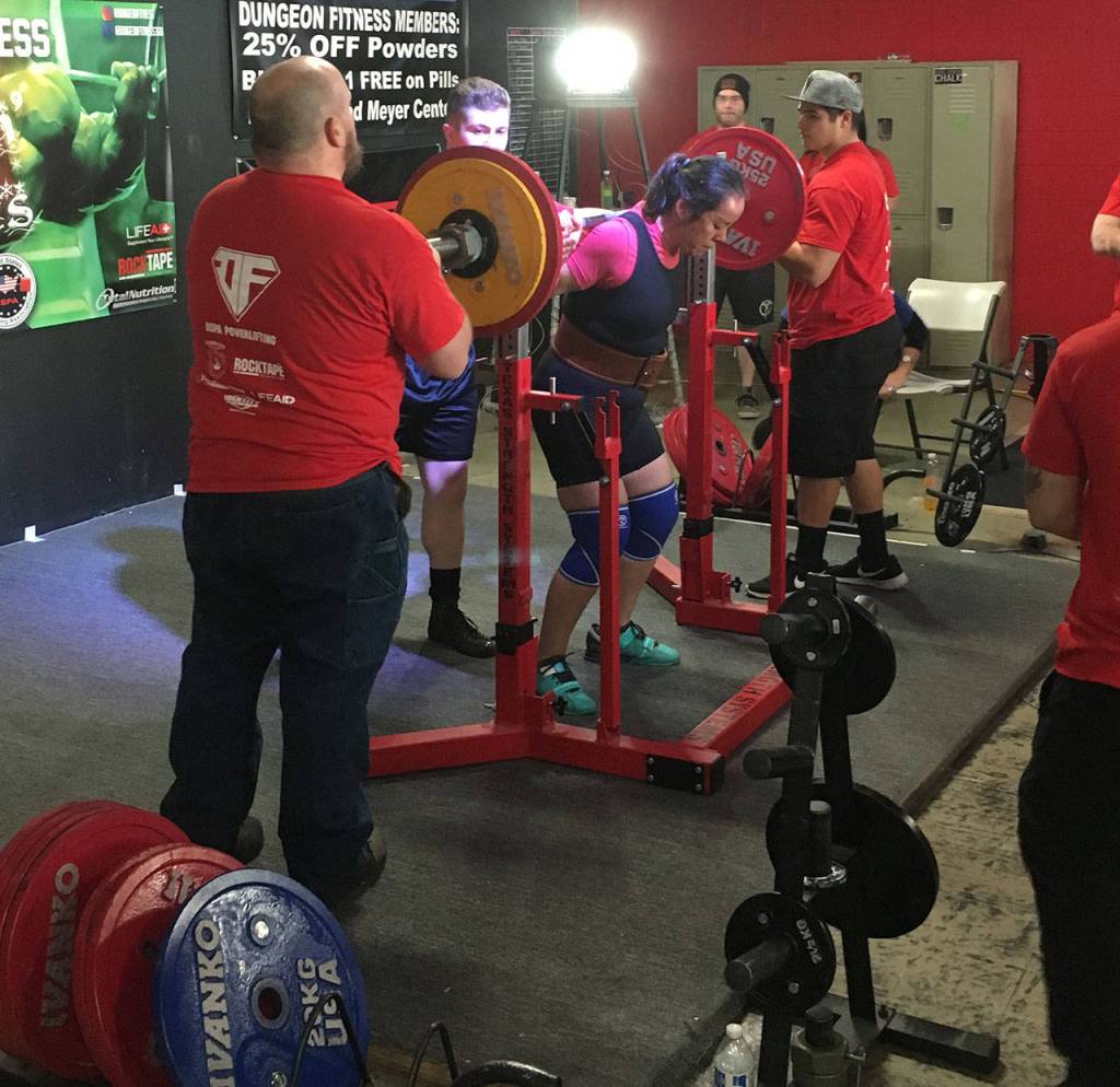 Sherry Phay displayed both her strength and quickness while winning her division in the Sleighin’ Weights powerlifting meet Saturday at Dungeon Fitness in Bremerton.