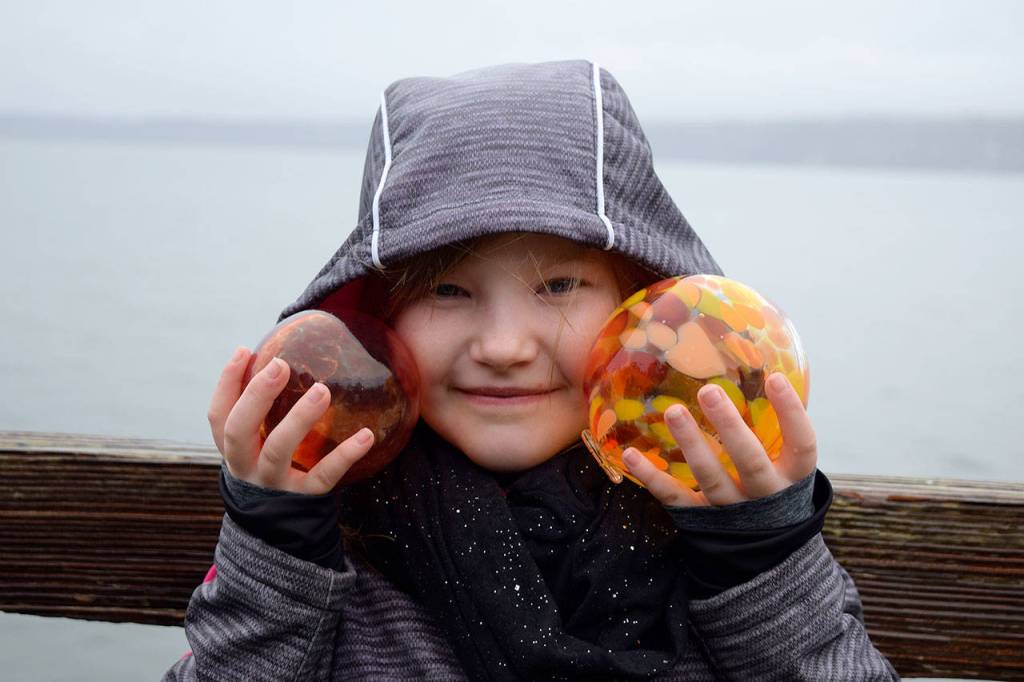 The Sea Float Scramble, hosted by Callahan’s Firehouse and Langley Main Street Association, saw a healthy turnout despite some soggy weather. There were more sea floats and wishing stones than ever before for people to take, perhaps even outnumbering the amount of people in attendance. The colorful glass objects, cast by glass artist Callahan McVay, could be found all over Seawall Park. Some were in puddles, bushes, trees — one even fell into Saratoga Passage’s chilly waters. Of course, one brave soul managed to fish it out of the sea as another unsuccessfully raced to grab it.