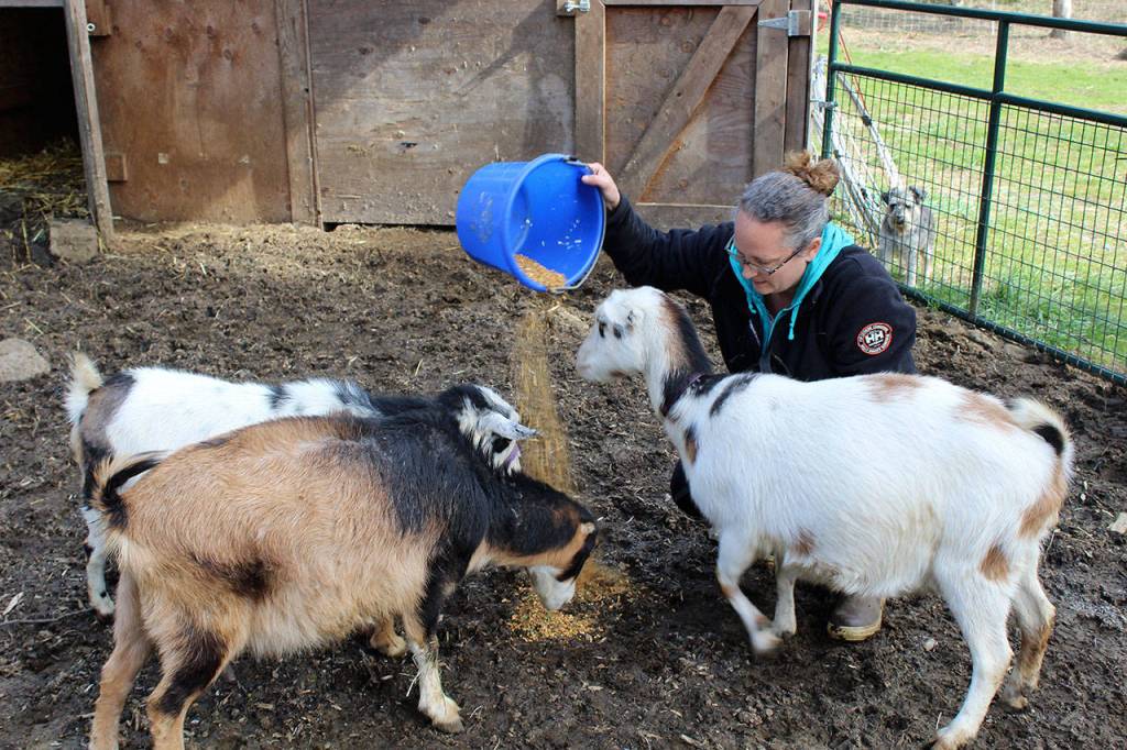 At last count, there were a dozen goats on Cooper’s farm in Greenbank where ducks and chickens wander about and a chorus of pigs serenade visitors.