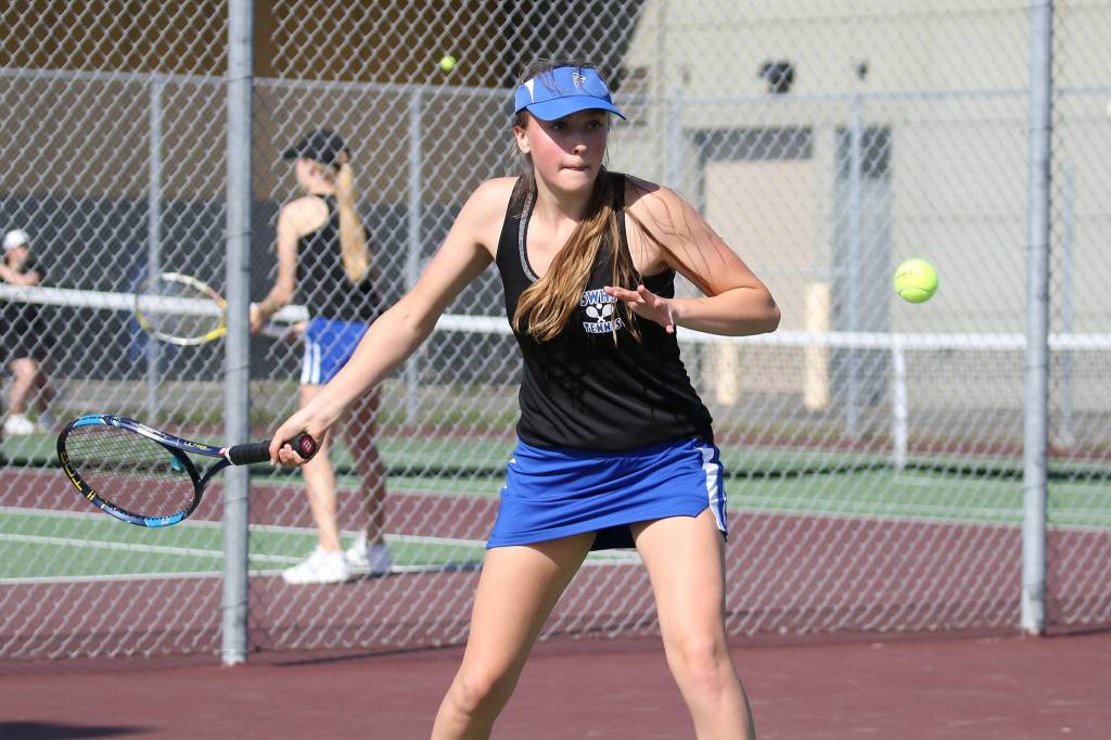 The South Whidbey High School tennis team bounced back from its first loss of the season to trim Coupeville 4-1 in a non-league match Wednesday, April 25.
