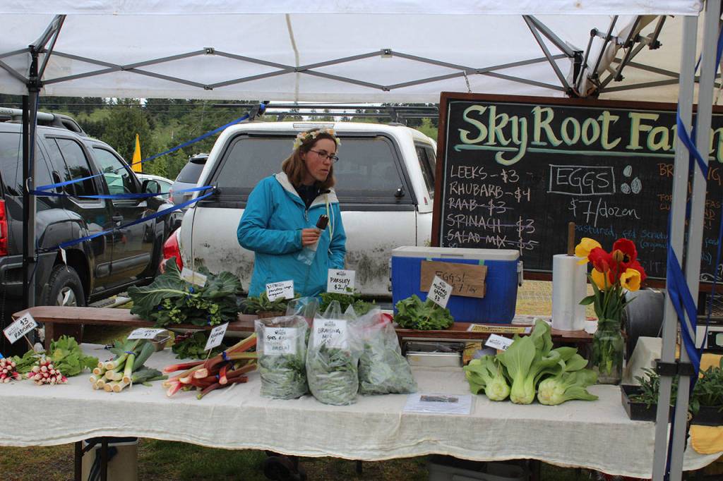 Arwen Normand, manager of SkyRoot Farm in Maxwelton Valley, had plenty of spring veggies to sell at the Bayview Farmers Market opening on Saturday. The market is open 10 a.m. - 2 p.m. every Saturday through the fall.