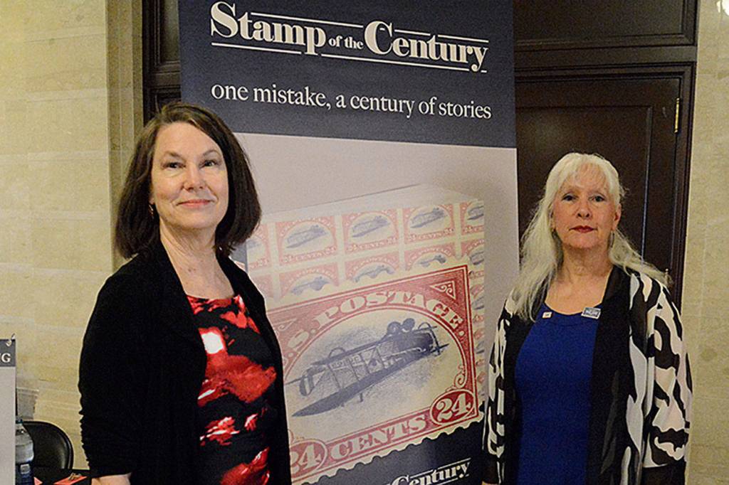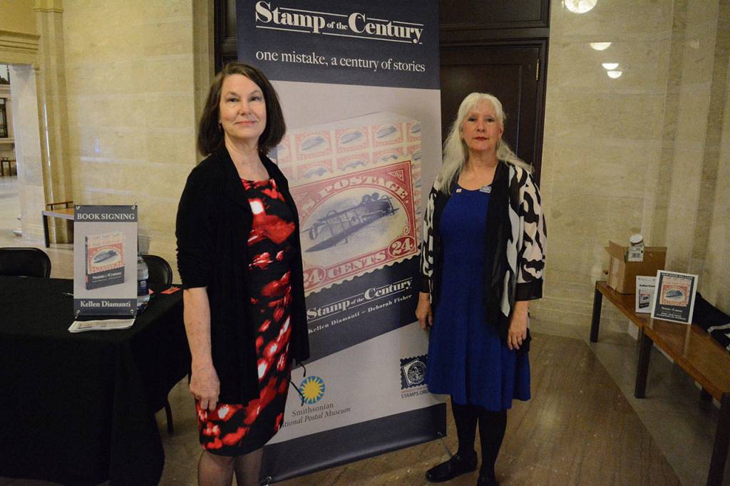 On the 100th anniversary of the misprinted stamp known as the Inverted Jenny, Deborah Fisher and Kellen Diamanti released their book, “Stamp of the Century,” during a ceremony at the Smithsonian National Postal Museum Tuesday.
