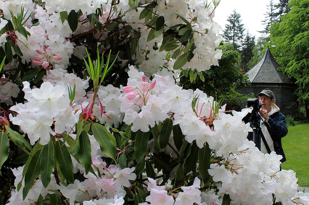 Blooming near the garden’s stone tower entrance, the two of them deemed it “a pain in the neck” as they maneuvered around the delicate white flowers.