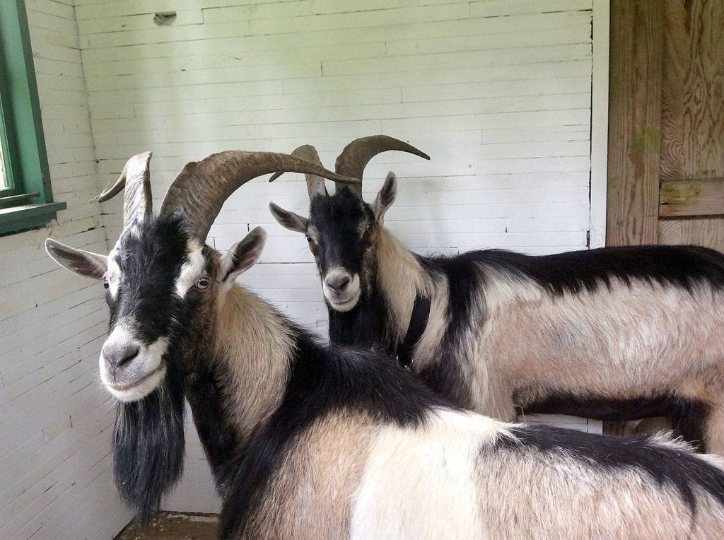 Eric Kelly said the goats were found in the area of Cedar Hill and Goss Lake Road. They are two tri-colored, intact males with horns. They have long black beards.