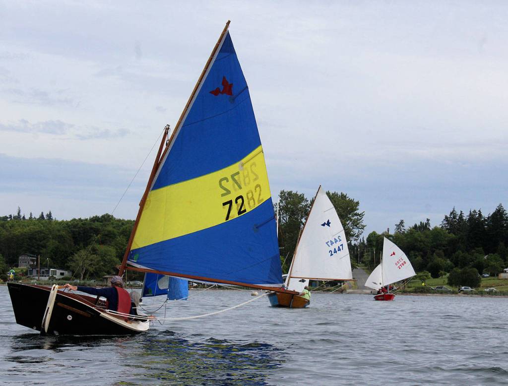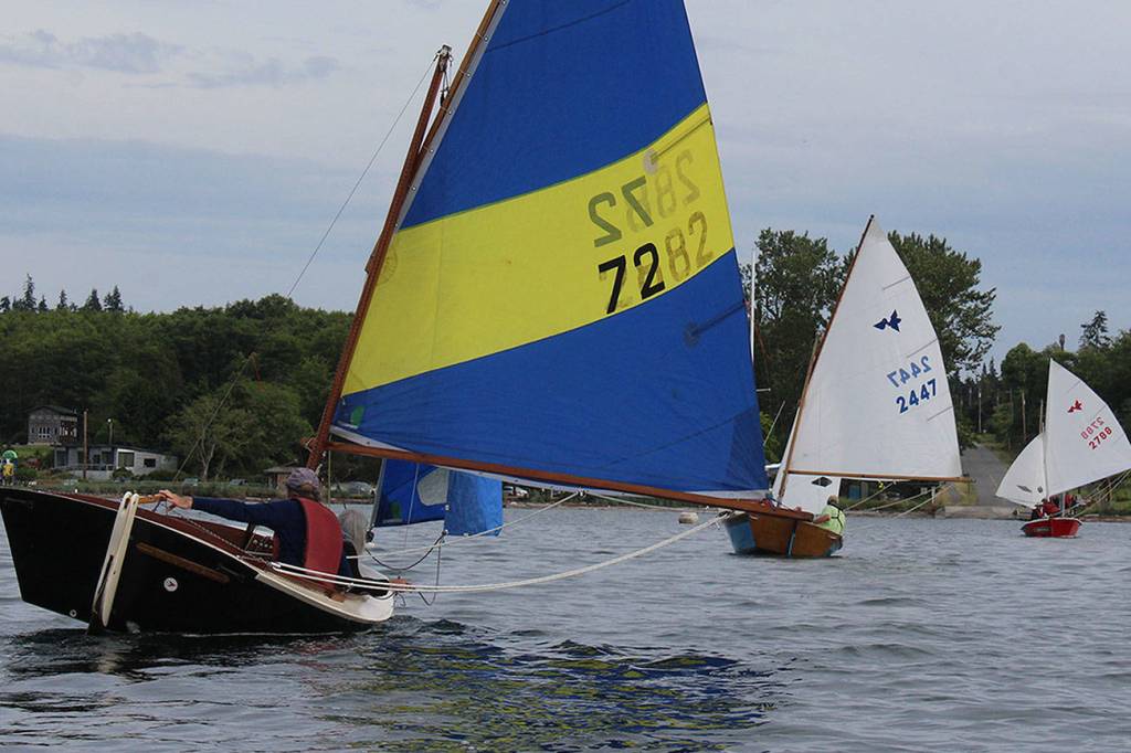 South Whidbey Yacht Club holds a series of races May through August for small sailboats called San Francisco Pelicans. Wide and sturdy, they sport a gaff rig that takes two sails and look like shrunken pirate ships.