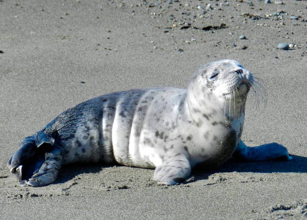 One female elephant seal named “Ellie” has been seen on the west side of Whidbey since 2010 when she came to molt.
