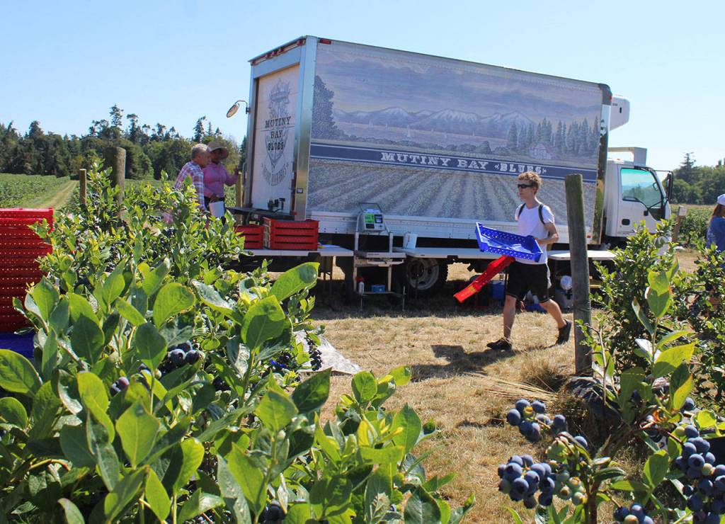 “They’re just ready to be picked this week,” said Britt Fletcher, owner of Mutiny Bay Blues, which is known for its organically grown, plump and robust blueberries. It supplies Seattle’s chain of PCC Natural Markets, and its berries are found on the shelves and plates of local grocery stores and restaurants and inside Whidbey Pies.