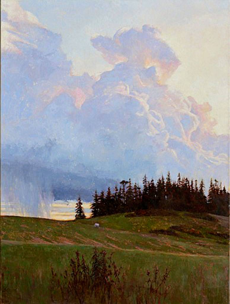 “I have an eye trained by the composition of a camera and also the linearity of it,” he said. “It’s a curse and it tends to be very draftsman-like. I tend to think like a wide-angle camera lens when I’m painting. I look at a big expansive foreground without much in it.”
