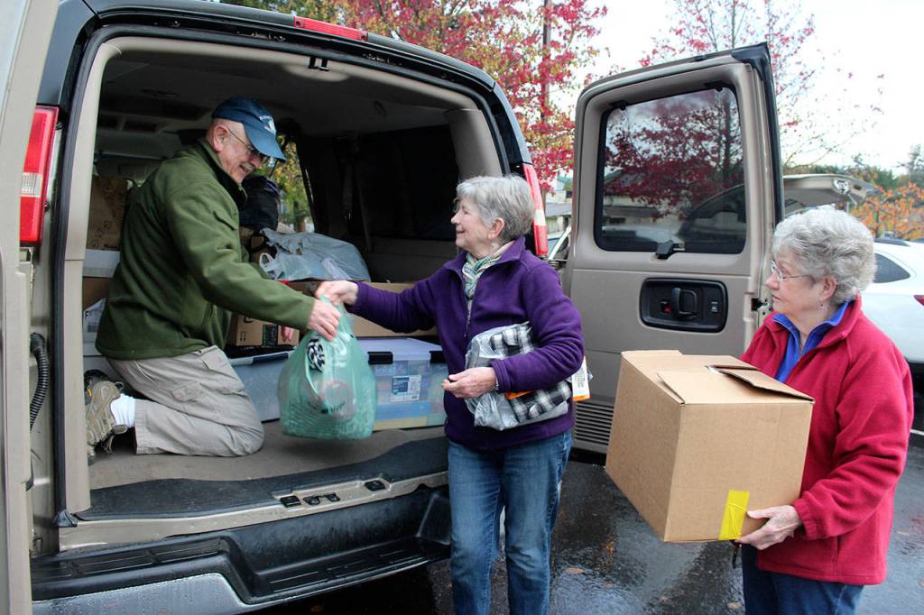 Parishioners from Langley’s St. Hubert Catholic Church and United Methodist Church along with Trinity Lutheran Church in Freeland donated new men’s and women’s clothing, blankets, personal care products, clock radios, CDs and more.