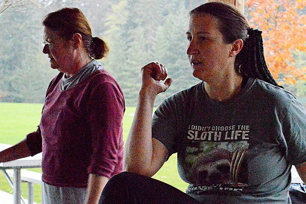 Beaven brings her “principles of zookeeping” to her class offered through South Whidbey Parks and Recreation, Sloth Army Running Club. The group’s motto is “we’re slower than a herd of sloths stampeding through peanut butter, but we run.”