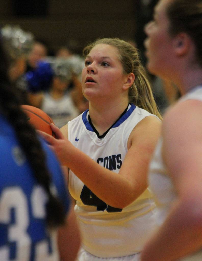 South Whidbey’s Emma Hodson hit a free throw midway through the period, but the Falcons didn’t get a field goal until Adrianna Briggs connected in the final seconds of the quarter.