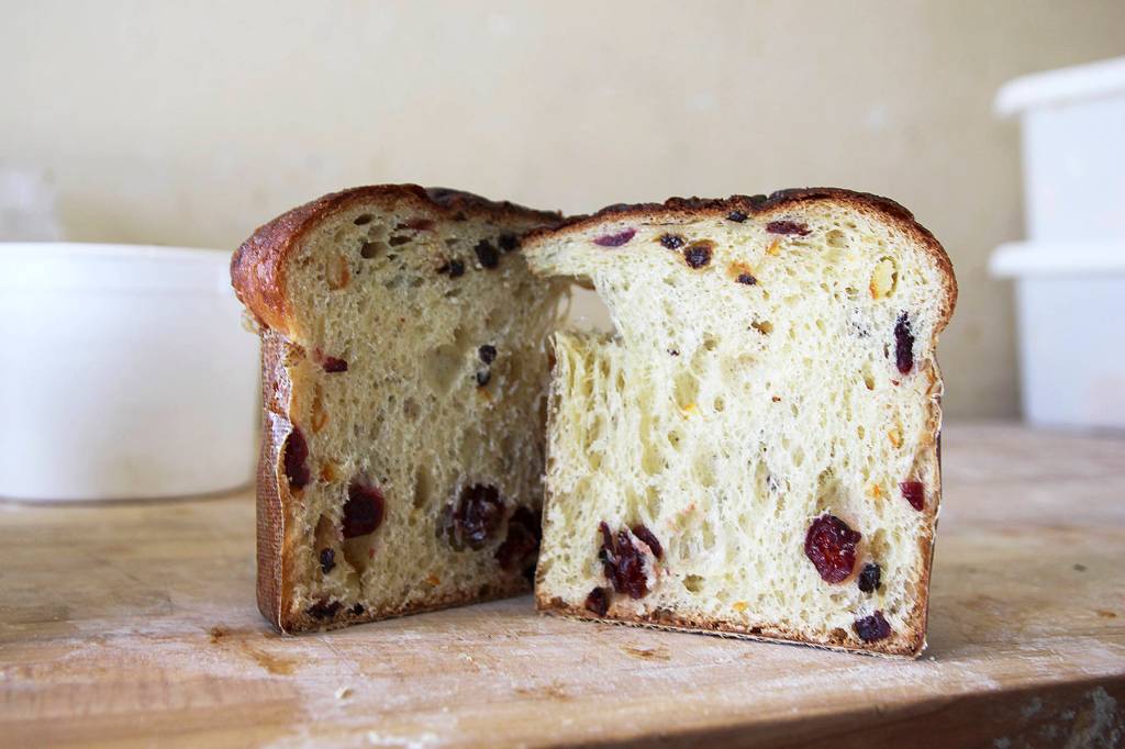 Patrick Goldacker, head baker at the Oystercatcher in Coupeville, has spent months perfecting the restaurant’s holiday panettone.