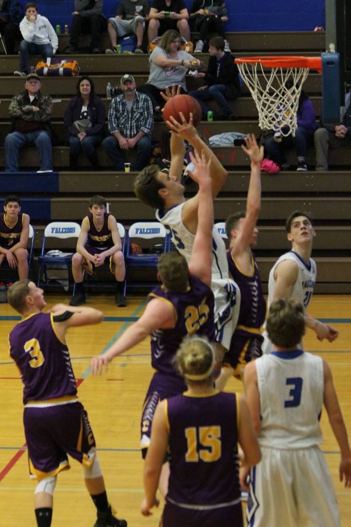 Carson Wrightson scored 8 points and Kody Newman 7 in the first quarter and Newman added another 7 in the second period to help the Falcons keep pace.