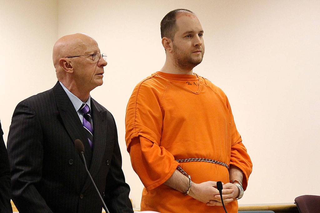 Photo by Jessie Stensland / Whidbey News Group.                                Christopher Locken appears with attorney Steve McKay in Island County Superior Court.
