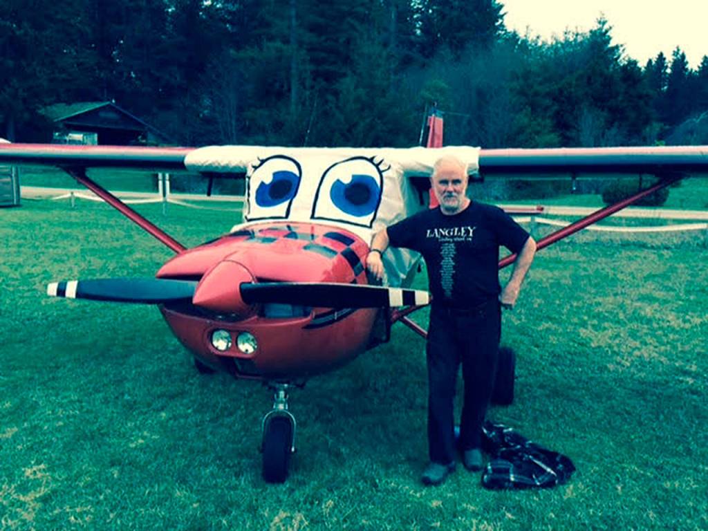 Lundahl flies out of the Whidbey Airpark in Langley. His 1975 Cessna 150 Aerobat is called Scarlett. She’s known for her big fluttering blue eyes painted on the canvas cover.
