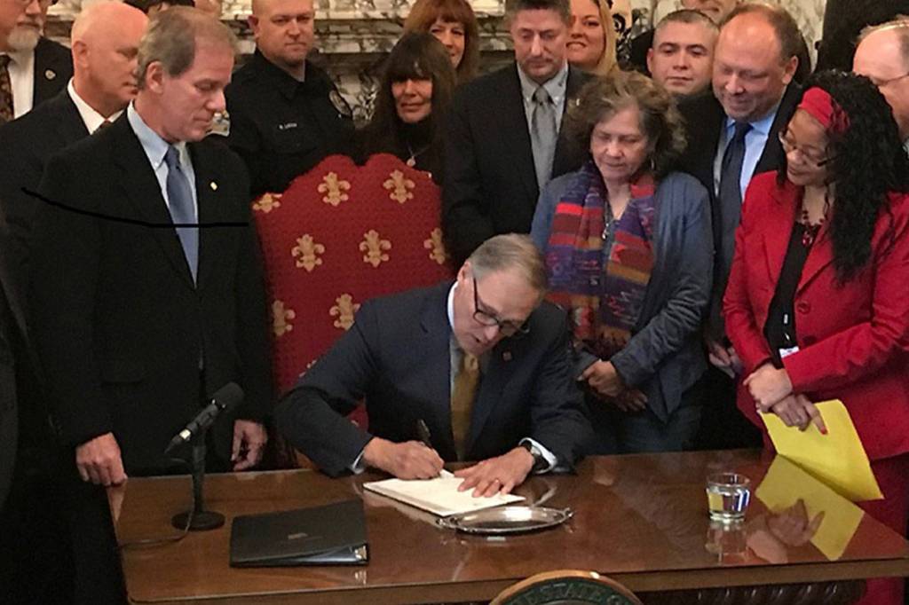 Washington Governor Jay Inslee signed the first bill of the 2019 legislative session at a ceremony in the State Reception Room on Monday, Feb. 4.