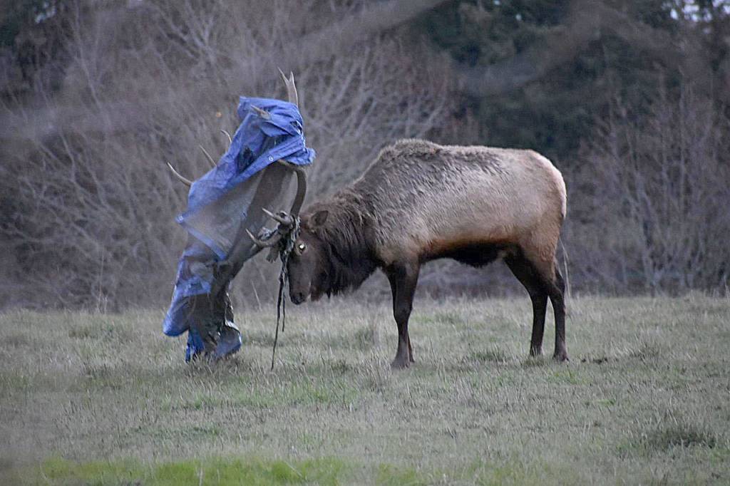 Bruiser, the sole elk inhabitant of Whidbey Island, has once again gotten something wrapped up in his antlers. It’s happened repeatedly since the intrepid bull elk swam to Whidbey Island in September 2012, according to Ralph Downes, an enforcement officer with state Department of Fish and Wildlife.