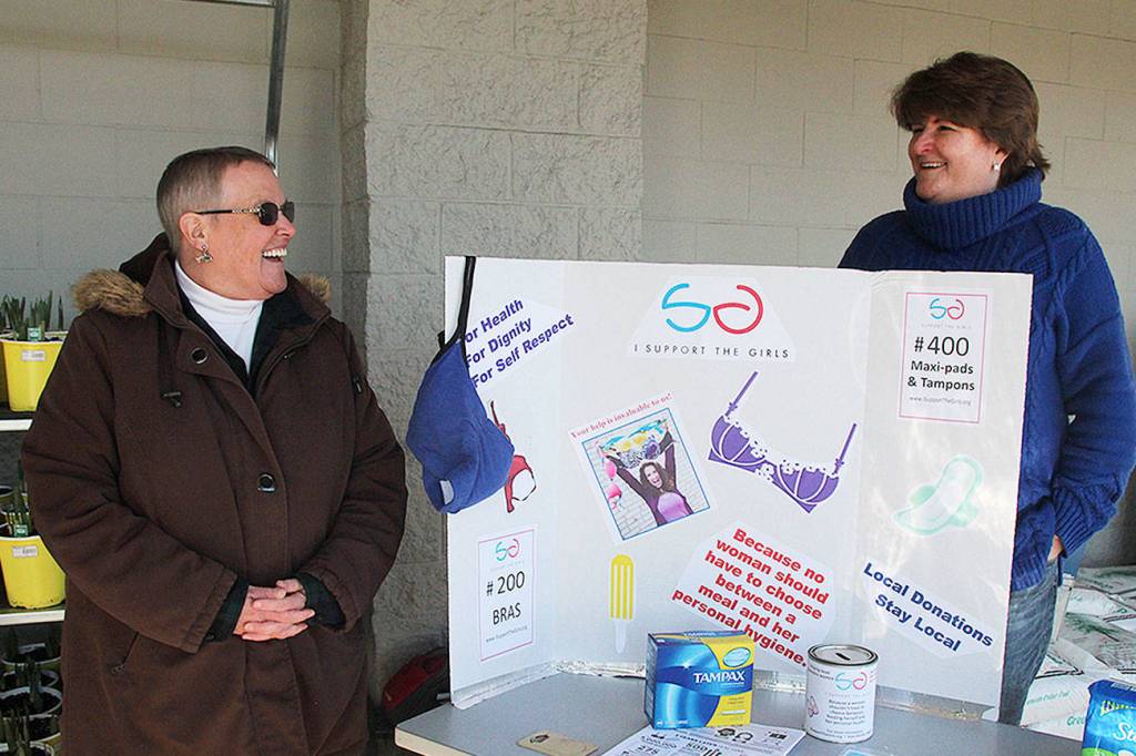 Kate Mistler, right, and Kristi Lovelady stand outside Walmart to collect bras, tampons and sanitary pads for local women in need. Mistler is working to bring the organization I Support the Girls to Whidbey Island. Photo by Laura Guido/Whidbey News Group