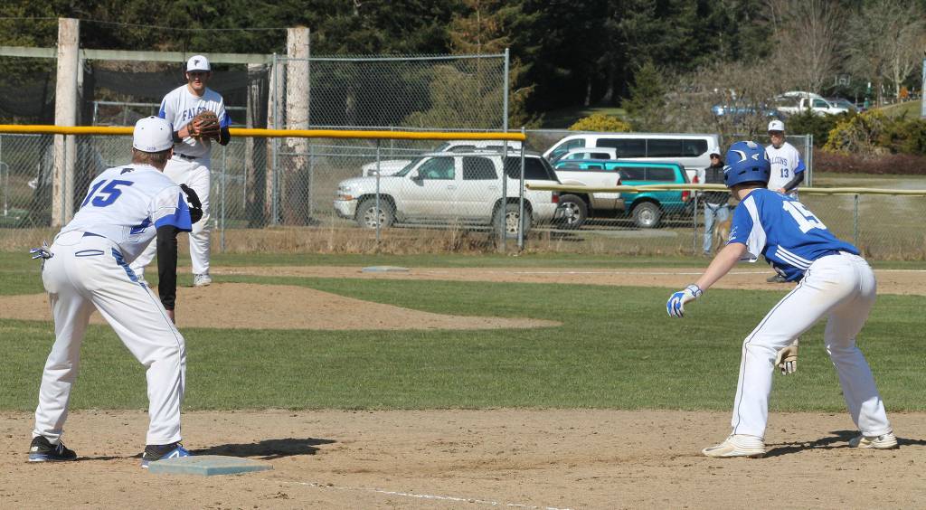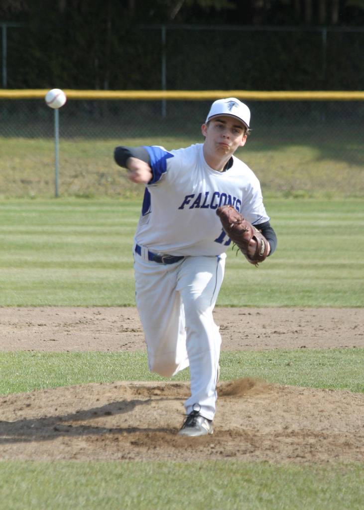 Four Falcons joined forces to toss the no-hitter at Chimacum. Ethan Petty took the mound for the first four innings, then Kody Newman, Drew Fry and Brent Batchelor threw one inning each.