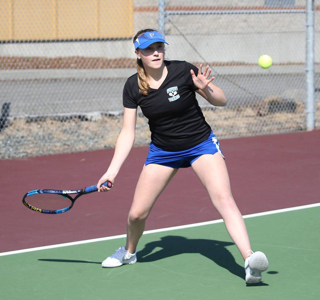 Winning its third straight match – all league contests, the South Whidbey High School tennis team moved into first place in the North Sound Conference.
