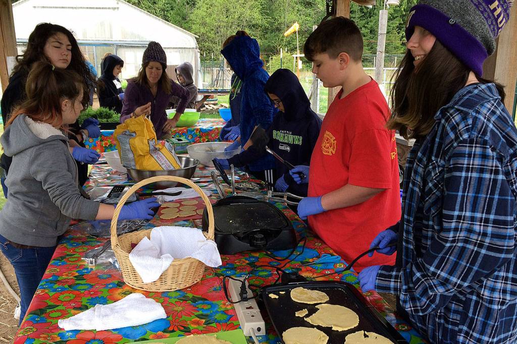 Students prepared tortillas stuffed with beans and garden greens, some just grown in the school garden hoop house. They were assisted by Cary Peterson, Nadean Curtiss and Kylie Neal of South Whidbey School Farms.
