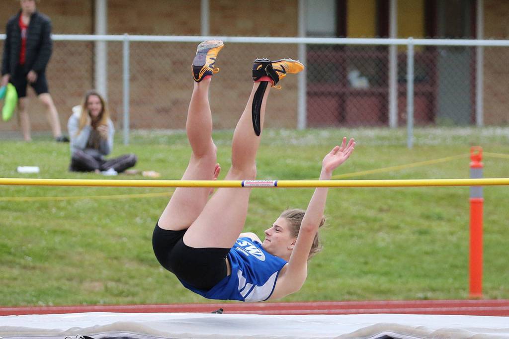 Results for the South Whidbey girls include Mattason Straub (fifth, long jump, 15-04.25), Mya Pratt (eighth, discus, 85), Maddy Drye (ninth, javelin, 84-06) and Lexi Starets-Foote (12th, discus, 74-04).