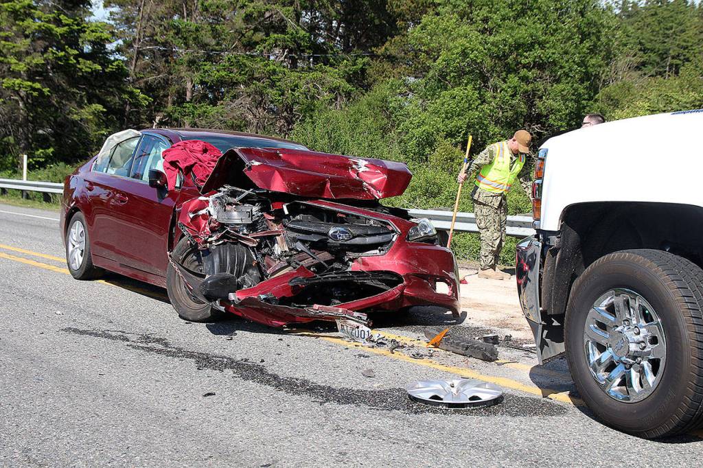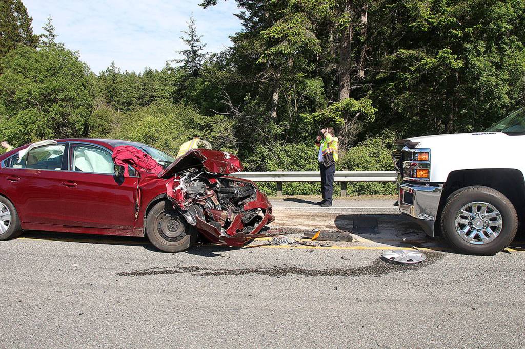 Around 3:50 p.m., a man in a Subaru was traveling southbound just south of Oak Harbor city limits when he crossed the median and hit the guard rail on the other side of the highway, said Deputy Lane Campbell with the Island County Sheriff’s Office.