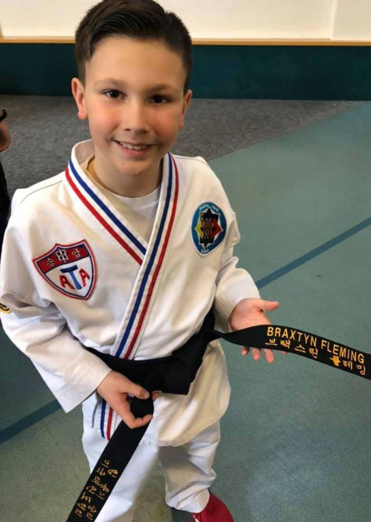 Braxtyn worked his way through each belt color and obtained a black belt in February.