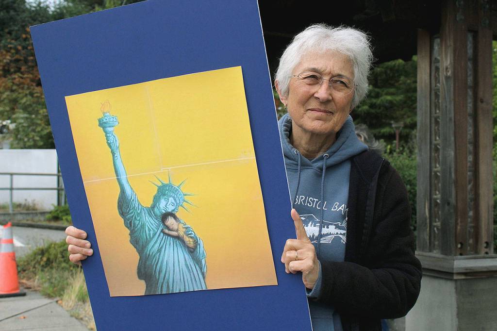 Whidbey Island Indivisible group joins banner march protesting immigration policy