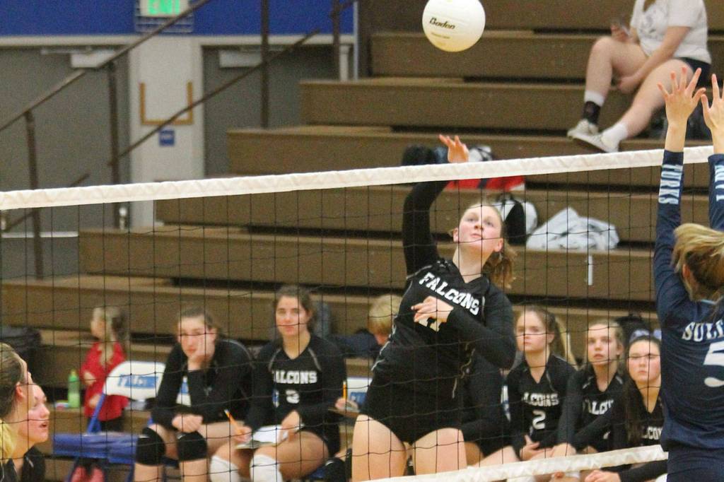 The Falcons bounced back in the second game. With the set tied at 6, South Whidbey squirted to an eight-point lead and then withstood a Turk rally to collect the win.
