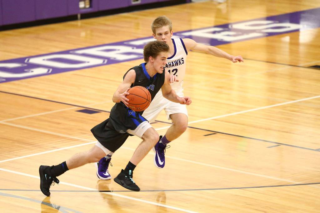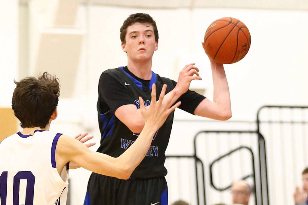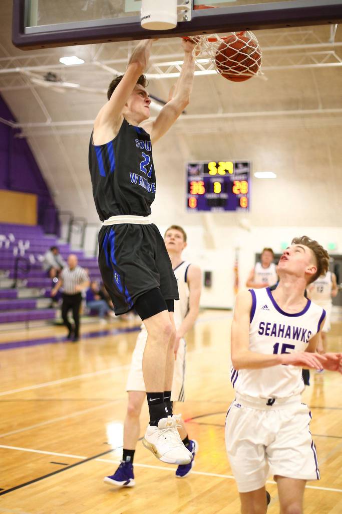 South Whidbey’s Carson Wrightson scored 9 points in the third quarter as the Falcons gained a little ground and trailed 47-37 going into the final period.