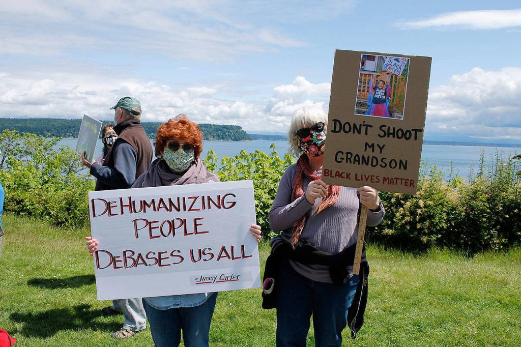 While there hasn’t been a plan to join forces, North Whidbey residents have come to the Langley protest, and vice versa. County commissioner candidates have even turned up without advertising who they are to stand in solidarity.