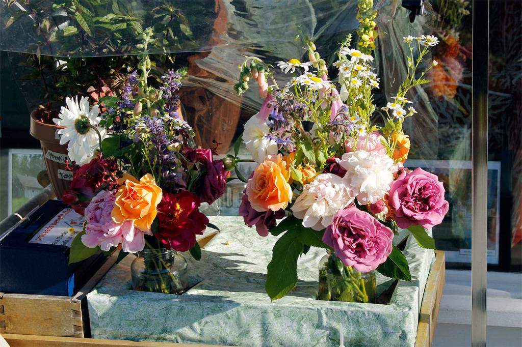 Right now, her bouquets contain peonies and roses. Soon they will have lilies and dahlias, the next flowers to be in bloom.