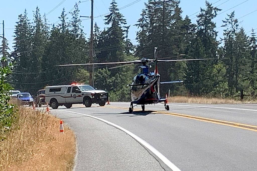 A press memo from the State Patrol states that 24-year-old Stephen Cairns of Seattle was bicycling southward on the side of the highway near the intersection with Mutiny Bay Road when a 2002 Honda Civic, driven by Brittany Wright, 26, of Oak Harbor, traveled onto the shoulder and collided with the bicyclist.