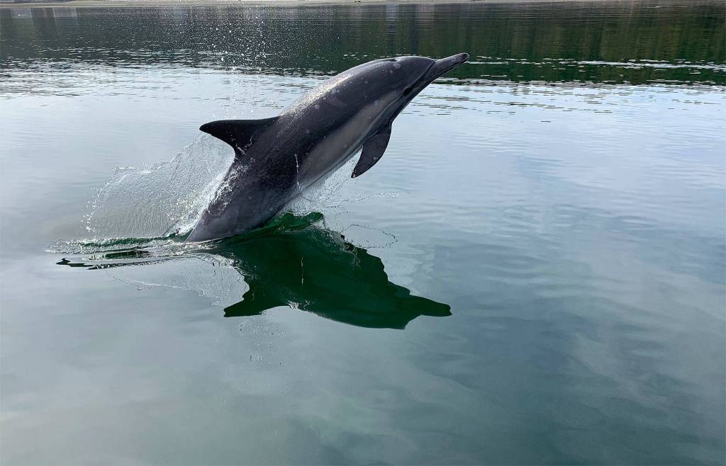 A few lucky boaters in Penn Cove got quite the show when a common dolphin was spotted splashing in the afternoon on Wednesday, Aug. 19.