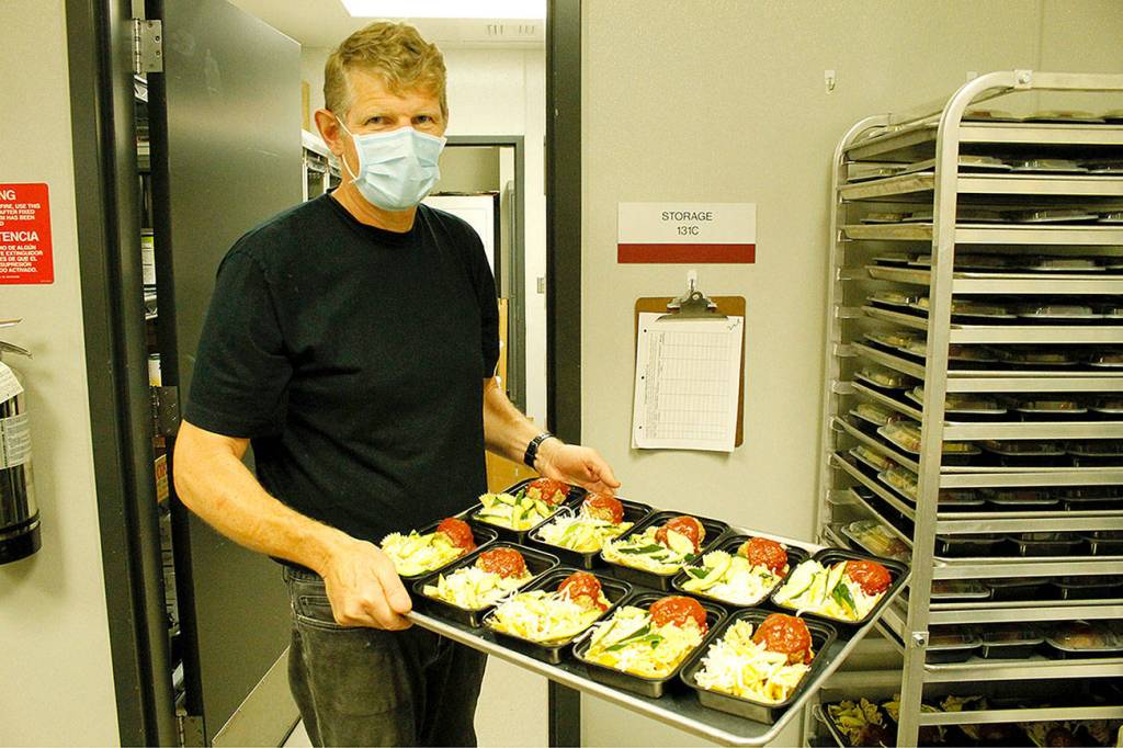 In the kitchen of Coupeville High School, Wurzrainer sifts through meatloaf, zucchini and bell peppers that will all be on the menu next week.