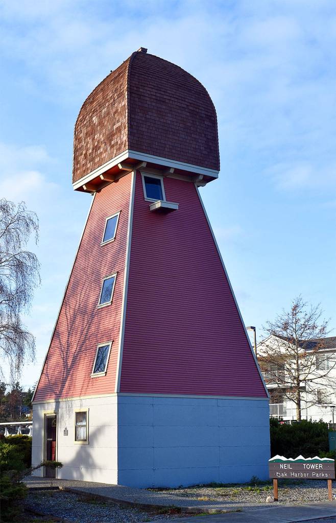 The Oak Harbor Lions Club raised money to move the tower by crane in November 1985, according to a Whidbey News-Times story at the time. It moved about less than 100 feet from its former location when the adjacent apartment buildings were under construction.