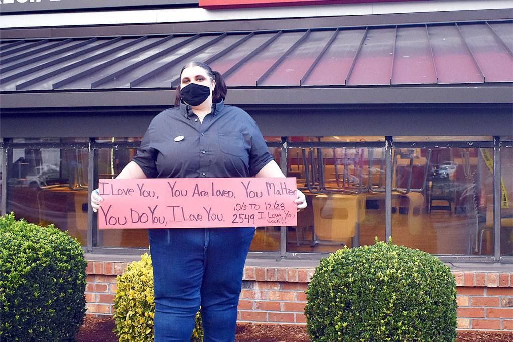 DiDonna, a lifelong Oak Harbor resident and assistant store manager at Wendy’s, tells her customers in the drive-thru that she loves them. If they say it back, she puts a tally on the wall.